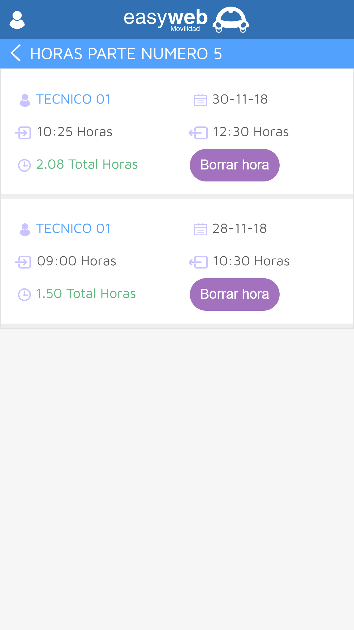 - Entrada de múltiples horas y materiales